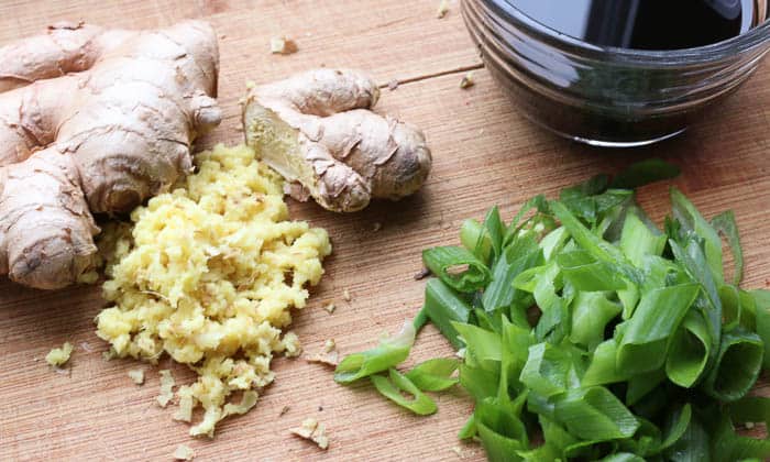 - Spread grated ginger over the salmon evenly.