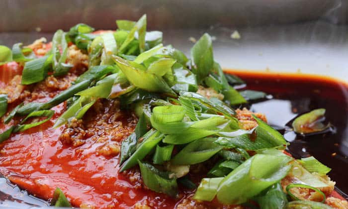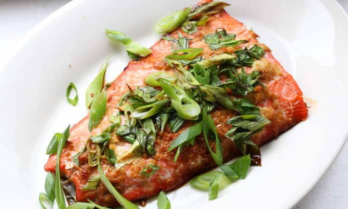 - Sprinkle chopped scallions over salmon.